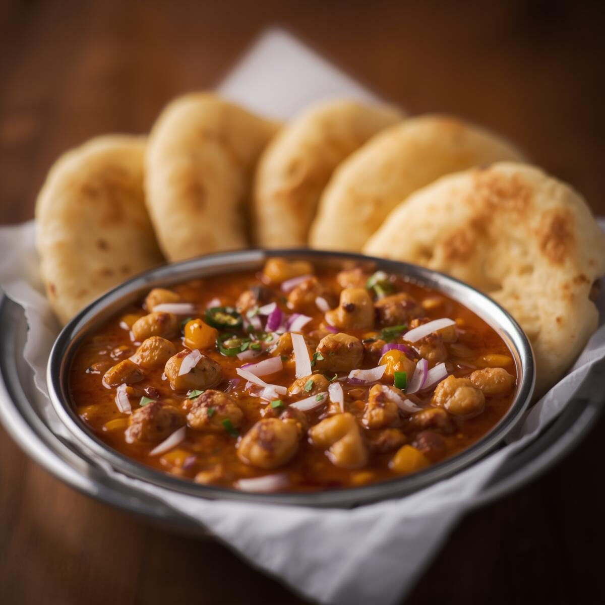 North Indian street food classic – 4 soft, pillowy kulchas (leavened flatbreads) served with spicy chickpea curry. Comfort food at its finest.